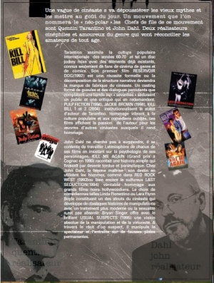 Le "néo-polar"Résumé : Une vague de cinéastes va dépoussiérer les vieux mythes et les mettre au goût du jour. Un mouvement que l’on nommera le « néo-polar ». Les chefs de file de ce mouvement sont Quentin Tarantino et John Dahl. Deux réalisateurs cinéphiles et amoureux du genre qui vont réconcilier les amateurs de tous âges. | |||||