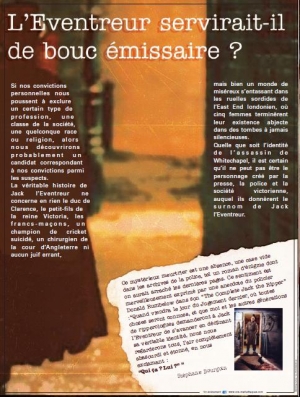 L'éventreur, bouc émissaire ?Résumé : Si nos convictions personnelles nous poussent à exclure un certain type de profession, une classe de la société, une quelconque race ou religion, alors nous découvrirons probablement un candidat correspondant à nos convictions parmi les suspects. | |||||
