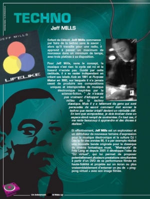 Et effectivement, Jeff Mills est un explorateur et un défricheur de nouveaux terrains d'expression pour la musique électronique et la culture DJ ! Dès la fin des années 90, il a par exemple réalisé une nouvelle bande originale pour le classique du cinéma fantastique muet, "Metropolis" de Fritz Lang et depuis 2001 il développe l'idée du "DJ virtuel", qui lui permet de proposer potentiellement plusieurs prestations simultanées à partir d’un DVD de sa performance filmée en haute-fidélité et projetée sur un écran ou plus vraisemblablement d’entamer un jeu de « ping-pong virtuel » avec son image filmée.